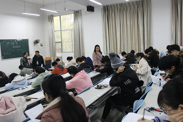 按学校统一安排,1月16日上午,瑞康临床医学院党委副书记、副院长陈日兰带领学生科、教务学生党总支负责人及辅导员对明秀校区A座、B座教室和图书馆等各专业考试考场开展期末巡考工作。