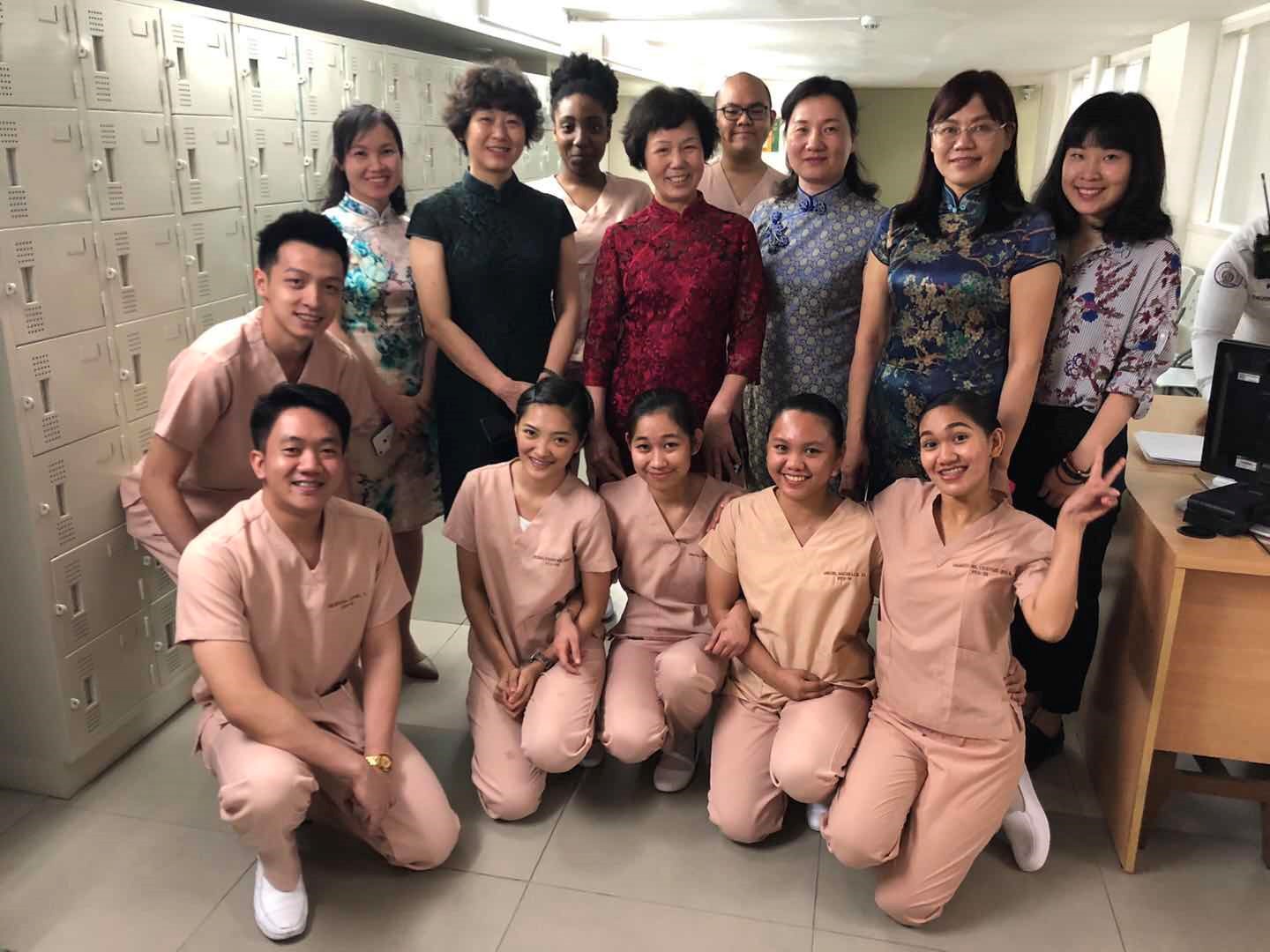 在菲律宾远东大学,护理学院院长Dr. Buenafe, 护理研究生部主任 Dr. Rachel、校长秘书 Ms. Leah接待了我院代表团。校长秘书 Ms. Leah介绍学校创建于1928年,是一所私立的非宗教性大学,开设有许多专业,目前正积极探索国际办学合作项目。双方就本科生、硕士研究生交换项目和中医及中医护理技术推广进行了探讨,达成一致意见。在护理学院院长Dr. Buenafe陪同下,我校代表团考察了远东大学的教学条件。
