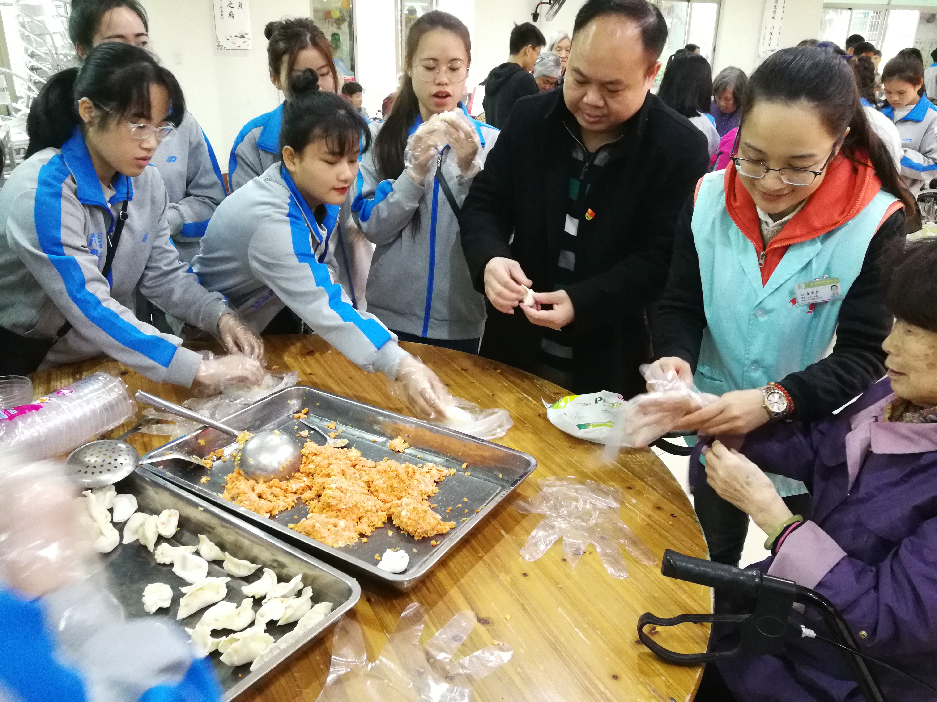 黄勇副院长和志愿者们为老人包饺子