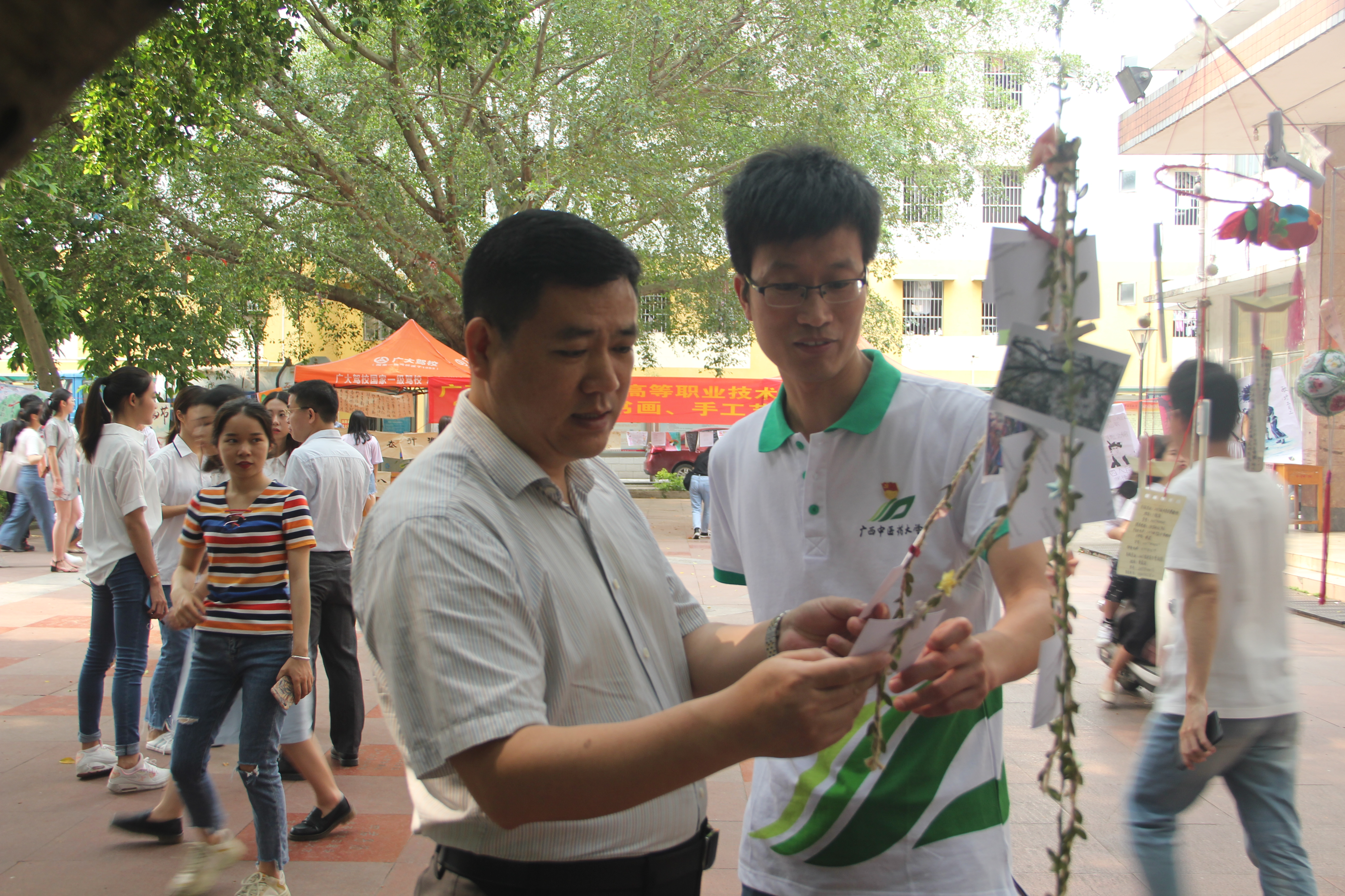 高职院党委蒋子华书记到现场指导并对部分参展进行点评,他高度赞扬了同学们的参展作品,同时希望同学们通过此次“大美广西”主题书画、手工艺品展,进一步坚定对博大精深的优秀传统文化、鲜明独特奋发向上的革命文化和承前启后继往开来的社会主义先进文化的自信。最后,他勉励同学们认真学习科学文化知识,开展中医药理论研究,不断提升自身综合素质。