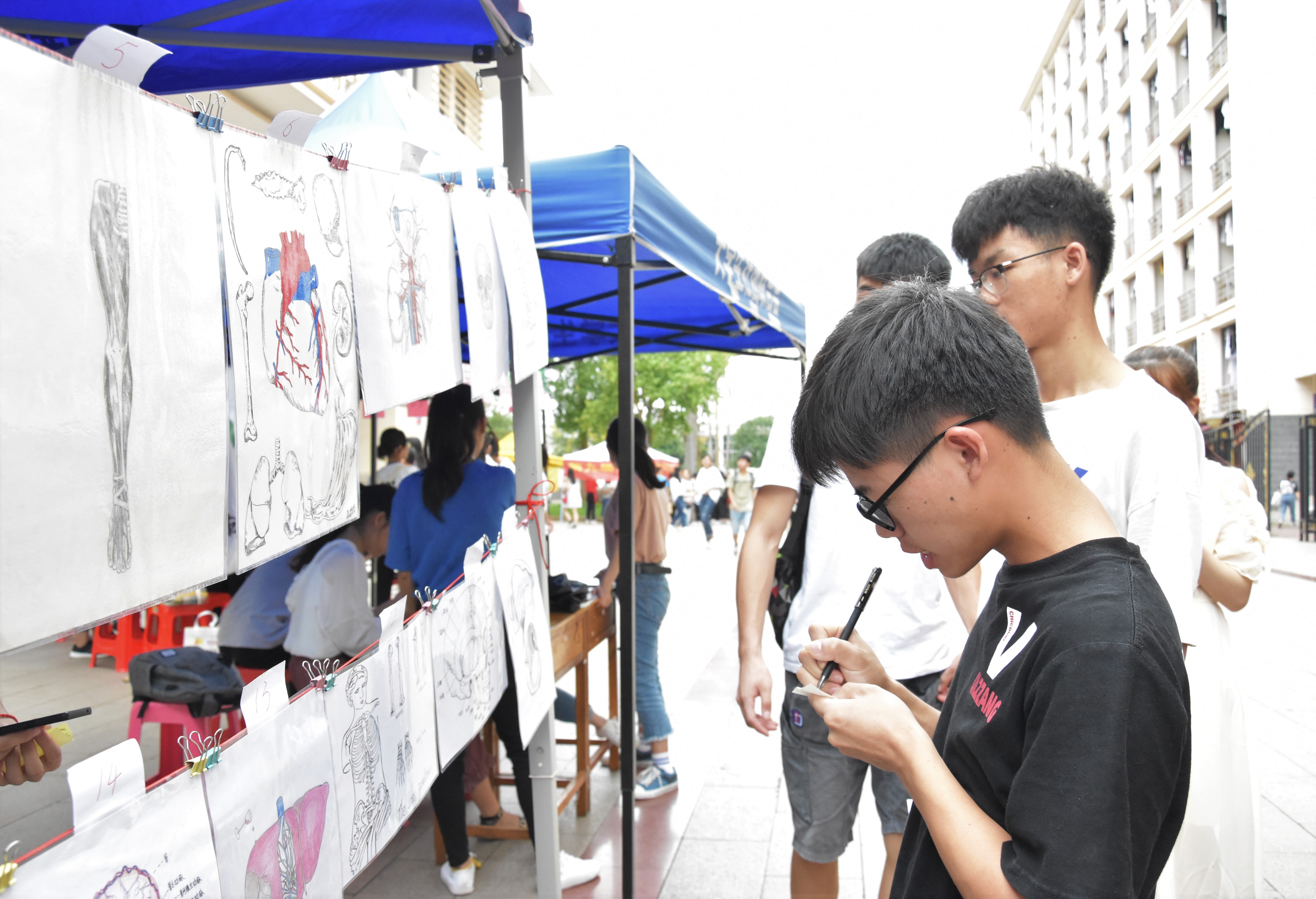 皓日当空,炎炎暖日,4月24日下午在五和食堂门口开展线下投票活动,经过现场老师、同学们,都被学生们书画作品深深吸引,不时停下脚步进行观赏,为喜欢的作品进行了投票。