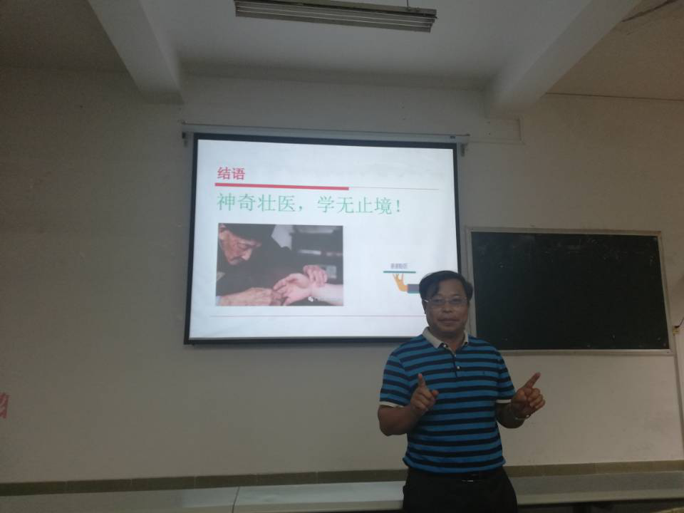 4月23日下午,壮医文化学者黄福丘在星空彩票老版本下载明秀校区西A-4教室主讲题为《基于古典阴阳谈壮医理论》的学术讲座,壮医药学院党总支书记张煜、院长蓝毓营、副院长韦英才、调研员韦杏等领导同志及壮医药学院部分师生参加了讲座。