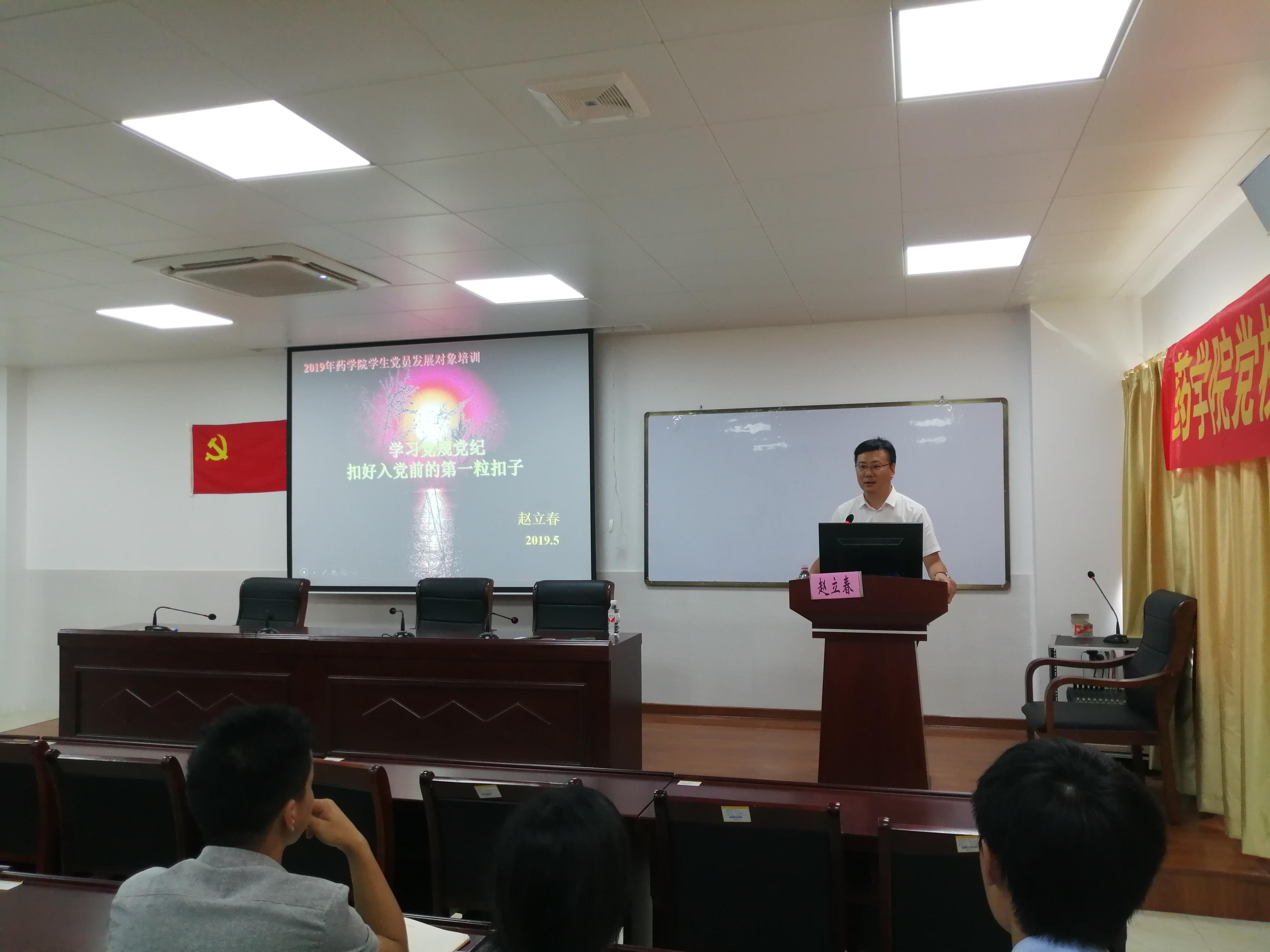 药学院党委纪检委员、常务副院长赵立春给学员授课