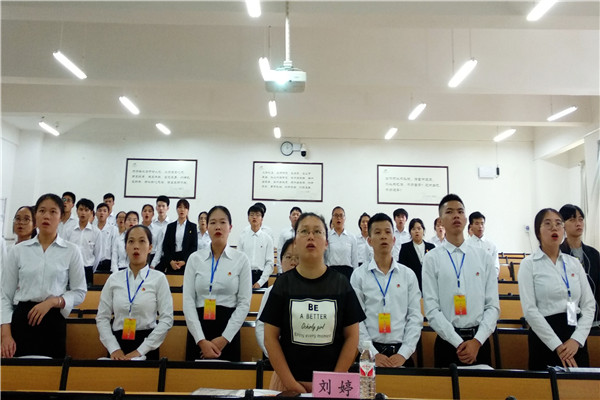 大会以全体奏唱中华人民共和国国歌和中国共青团团歌拉开了帷幕,随后由壮医药学院分团委学生会代表向大家汇报了2018-2019年所取的成绩以及对新学年的工作进行了重要阐述。紧接着团学试用委员依次上台进行演讲竞选。随后刘婷宣读了壮医药学院新一任团委学生会就任名单,并为表现优异的17级团委学生会干部颁发聘书。