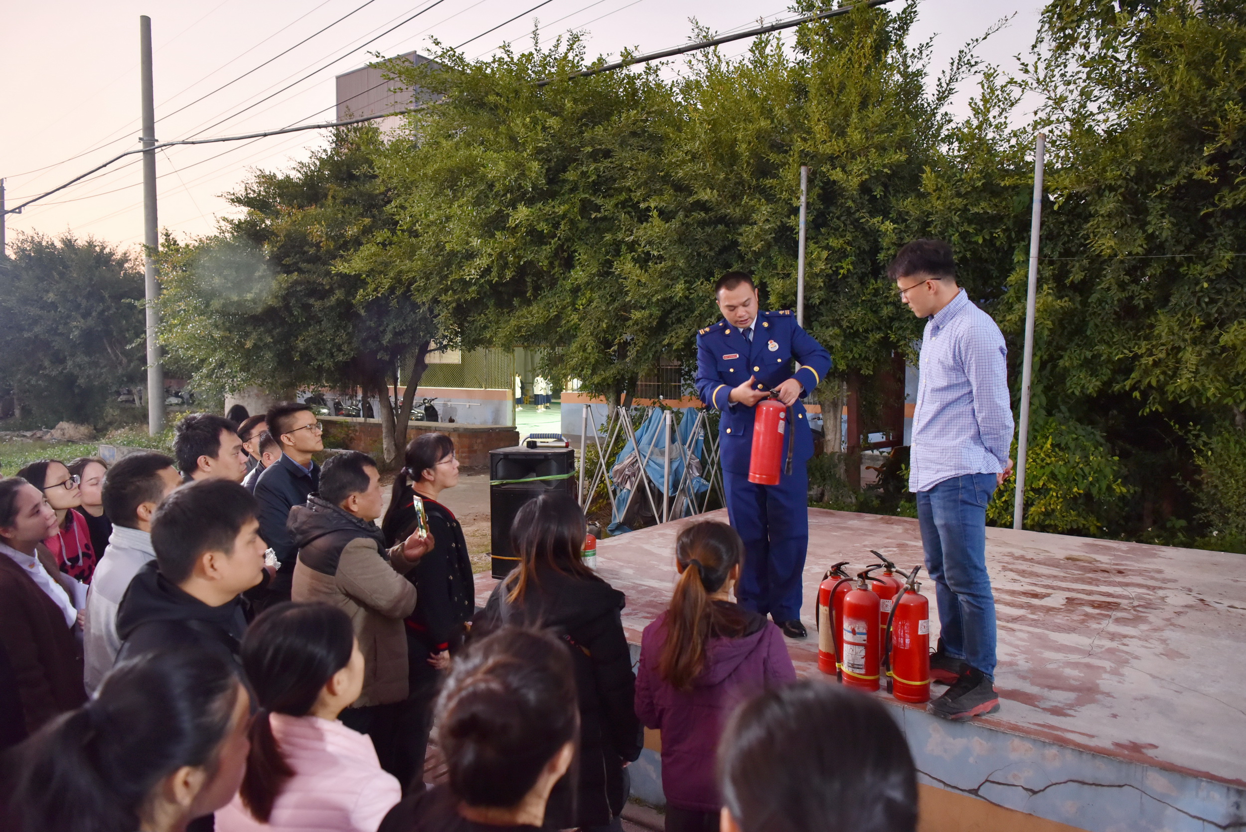 现场讲解了灭火器的使用步骤和注意事项