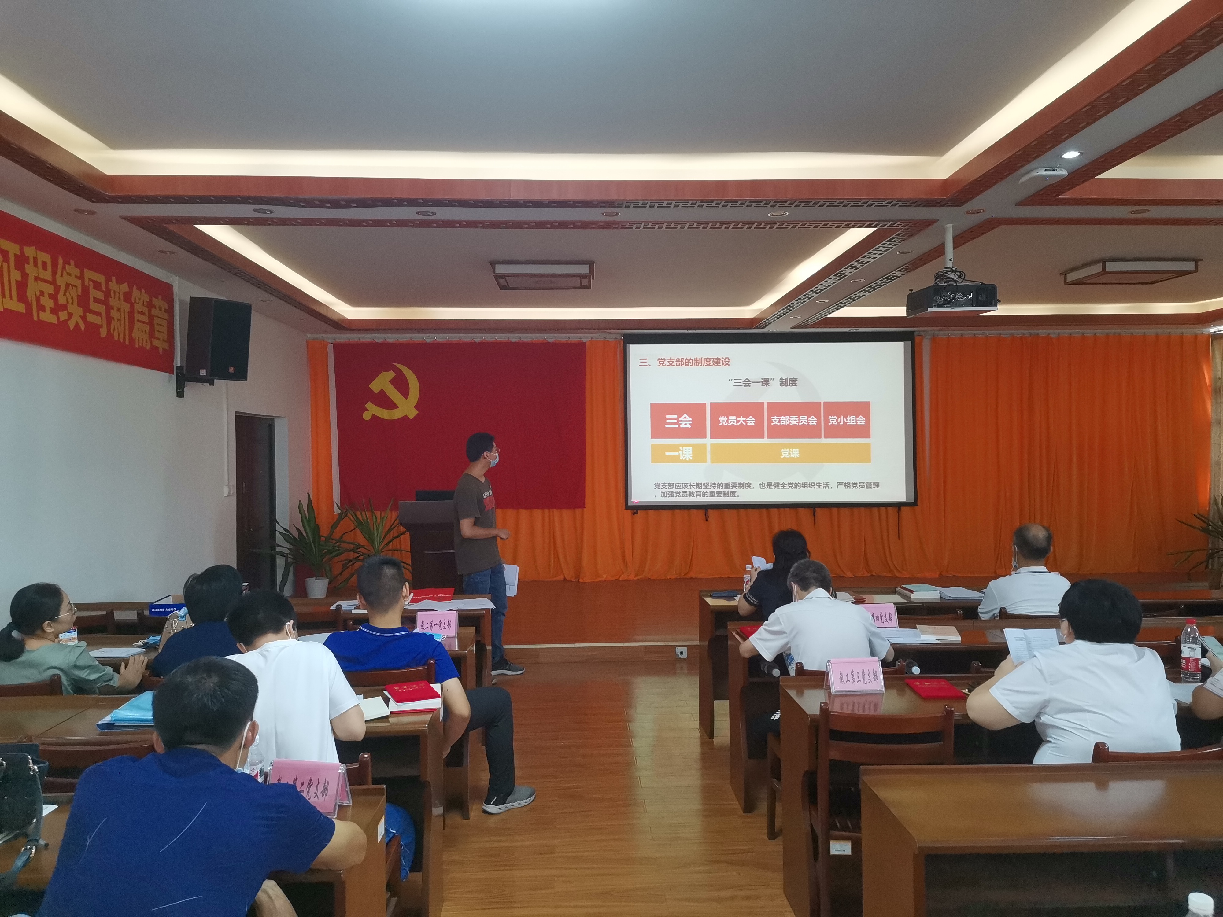 随后,学院党委组织员潘雄泽以《加强基层规范化建设筑牢坚强战斗堡垒》为主题,结合《基层支部委员培训学习手册》和基层党支部实际工作中存在的常见问题,从“党支部的基本任务”“支部委员的职责与分工”“党支部的制度建设”“党支部的日常工作”等4个方面详细解读了如何做好党支部规范建设工作。