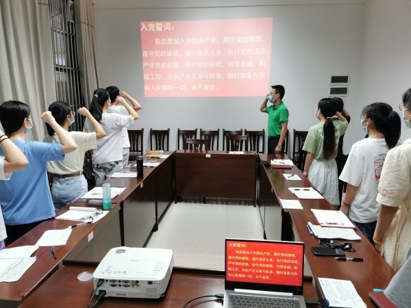 宋南带领全体在校生党员重温入党誓词,让党员们不忘初心,始终牢记自己职责和使命,使党员重燃入党的自豪感和责任感,用行动来履行自己的入党誓言。