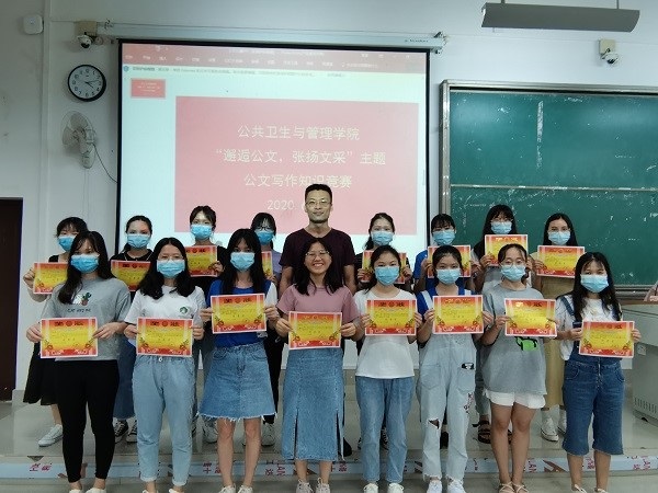 6月14日,公共卫生与管理学院在教学楼1-201举行“邂逅公文,张扬文采”公文写作知识竞赛表彰会,学院学生工作办公室主任宋南到场为同学们颁奖。宋南向获奖的同学表示祝贺,同时强调了公文写作能力对学生的重要性,鼓励大家以后也要积极参加此类专业知识比赛,不断增强自己的专业能力水平。