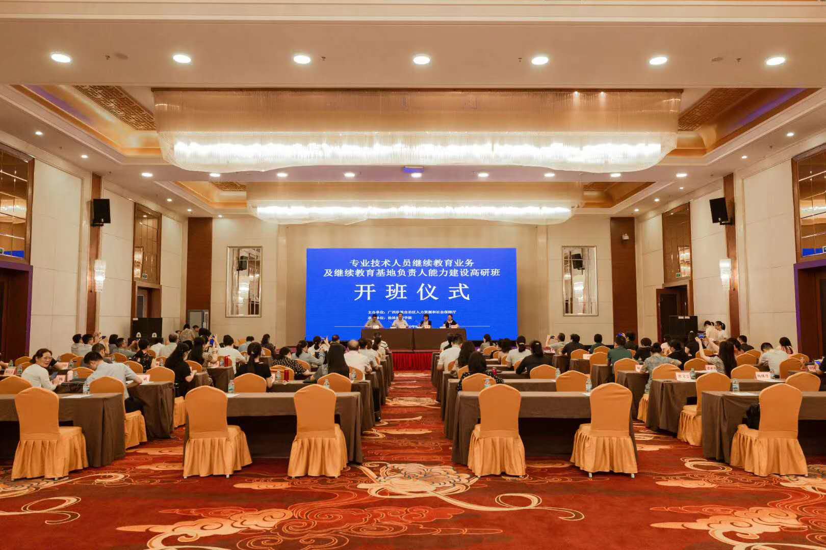 8月3日上午,自治区人力资源和社会保障厅在桂林旅游学院举行“自治区专业技术人员继续教育基地授牌仪式”和广西专业技术人员继续教育业务及继续教育基地负责人能力建设高级研修班。自治区人力资源社会保障厅副厅长、一级巡视员蒋劼,自治区人力资源社会保障厅专技处处长朱泓昊出席授牌和开班仪式。我校继续教育学院副院长黄瑞诚参加了上述活动。