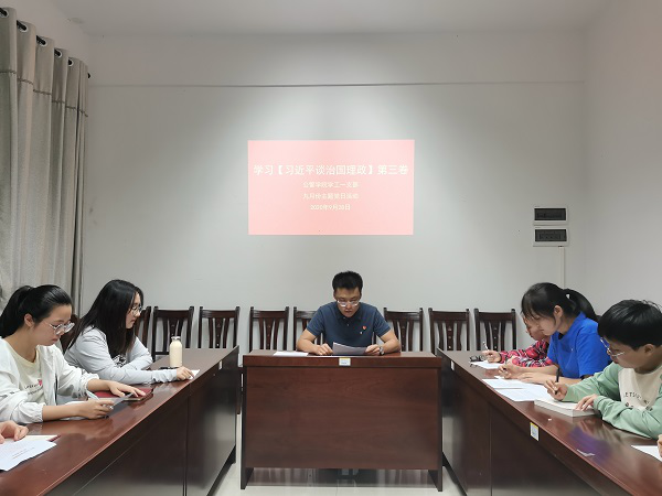 9月28日,公共卫生与管理学院学生一支部在大学生活动中心A112开展学习《习近平谈治国理政》第三卷九月主题党日活动,支部书记宋南以及支部全体学生党员参加了会议,会议由宋南主持。