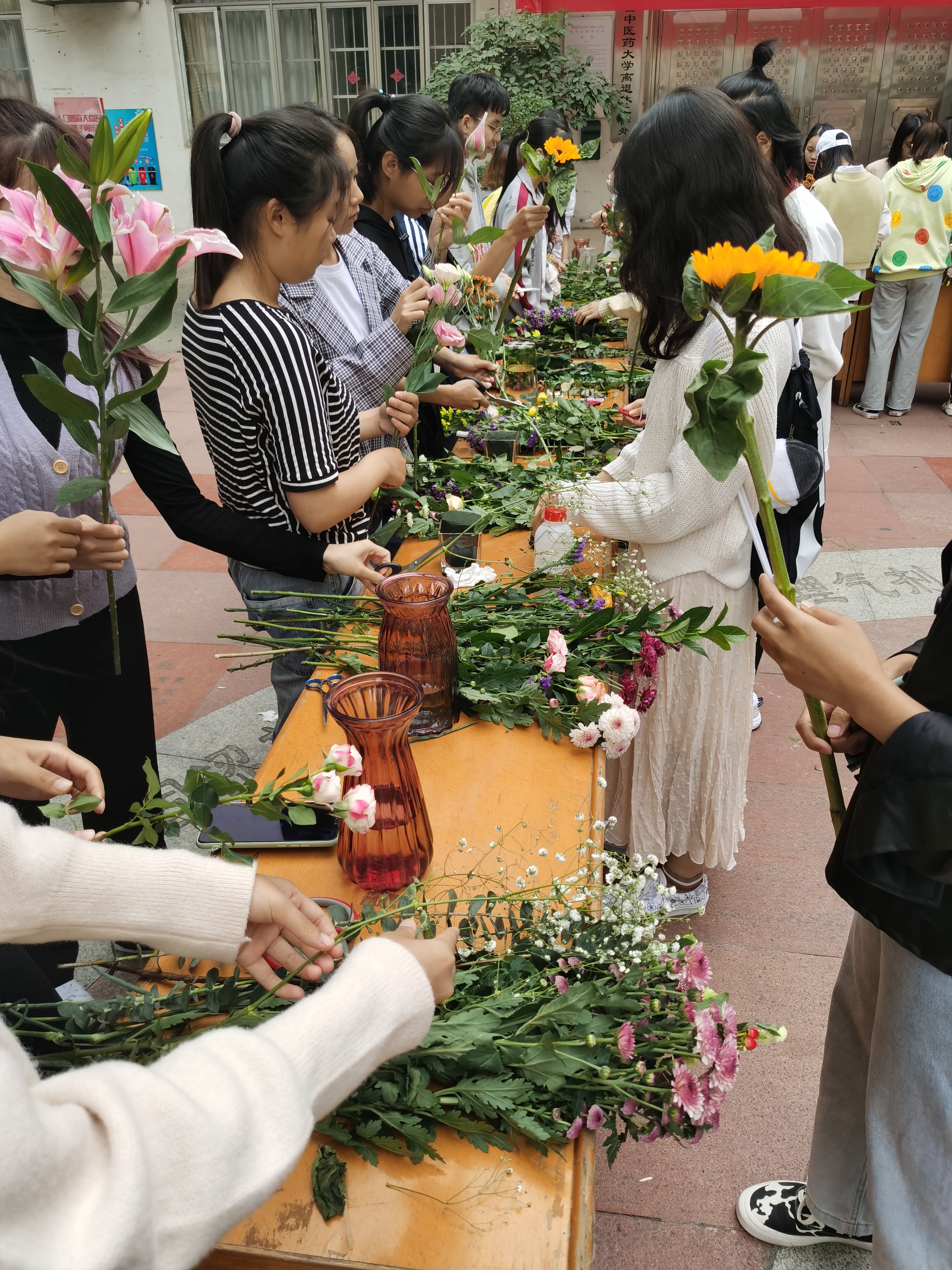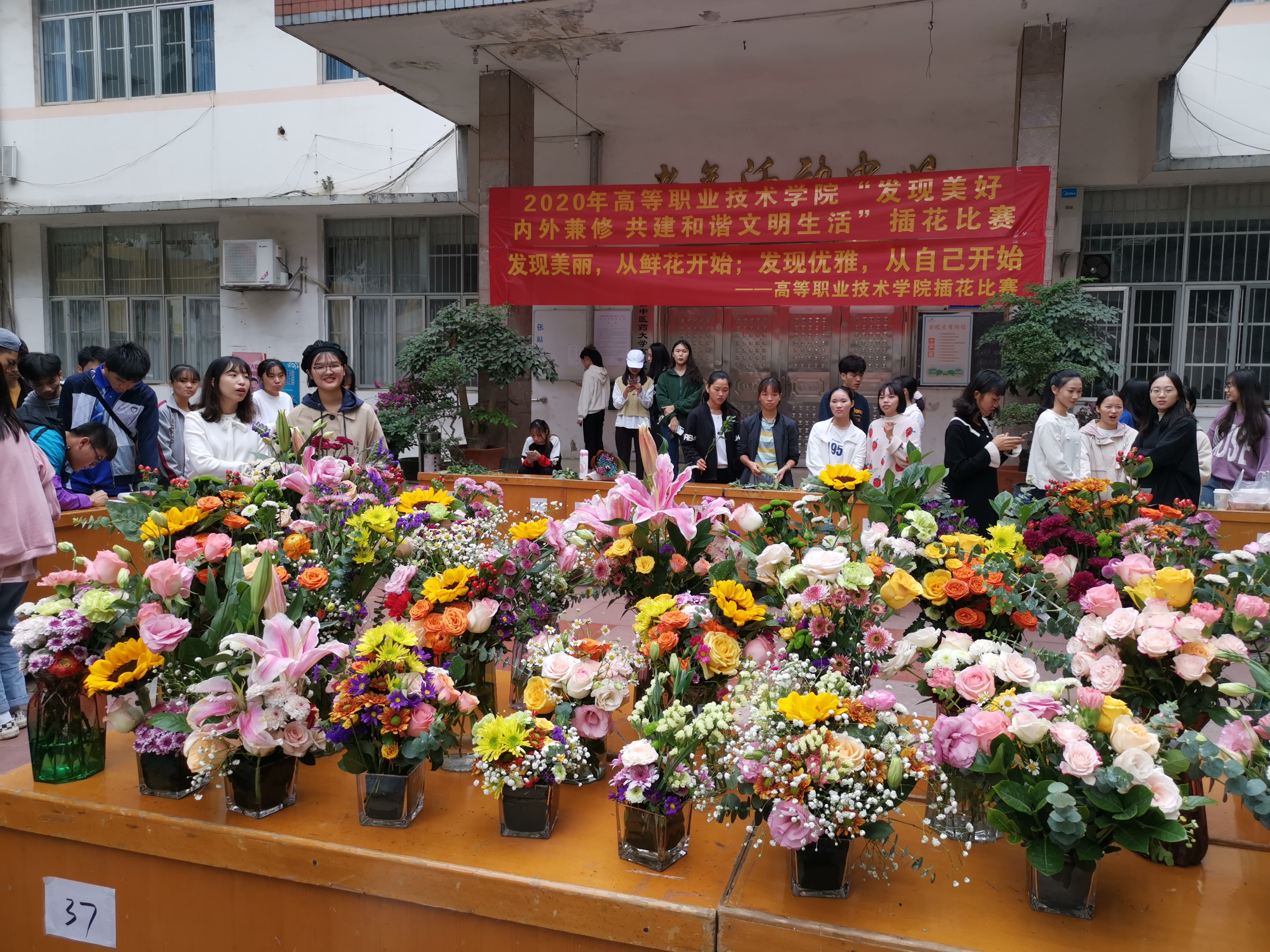 高等职业技术学院开展插花品美活动 来源:高职院 作者:高职院团委 日期:2020-11-17 点击数: 次 分享到: 为了丰富同学们的校园文化生活,激发同学们发现美、创造美的激情。11月15日,高等职业技术学院团委学生会在明秀校区汤歌苑举办以“发现美好,内外兼修,共建和谐文明生活”为主题的插花品美活动。高等职业技术学院20个班级的490名学生参加了本次活动。此次活动既丰富了同学们的课余生活,又提高了同学们发现美、创造美的激情和能力,激发了同学们的想象力和创造力,满足了同学们对多样化校园文化生活的需求。插花活动现场同学们的插花作品展 打印正文 关闭本页
