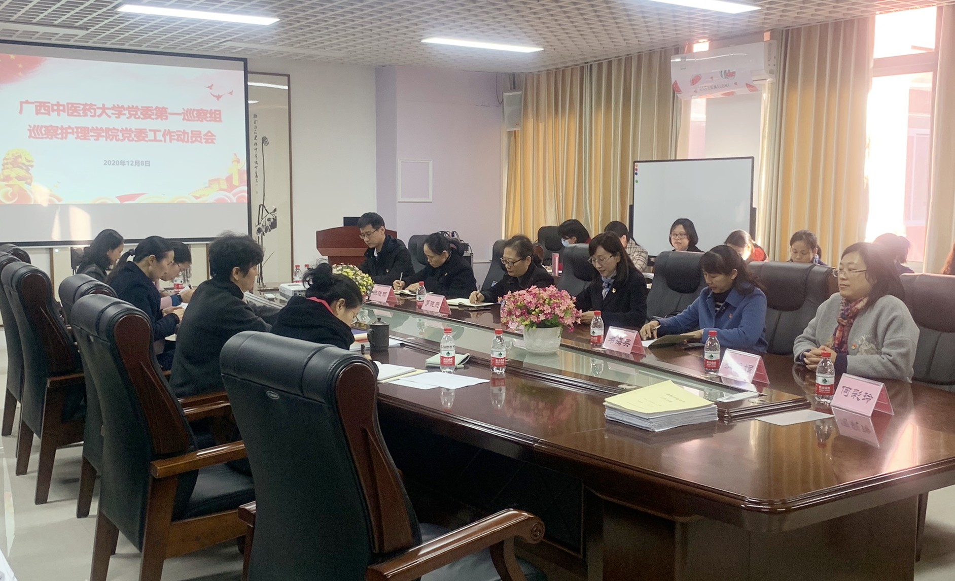 12月8日下午,星空彩票老版本下载党委第一巡察组到护理学院党委召开巡察工作动员会,第一巡察组组长姜建萍、副组长罗晓燕、副组长张艳娟、学校纪委副书记韦海英以及巡察组成员,护理学院全体教职工和学生党支部代表出席了会议。
