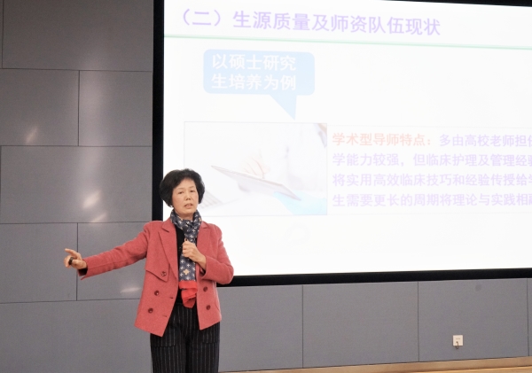 杨连招从“对高素质护理人才培养的思考”出发,介绍了高素质护理人才培养的现状,分析了社会对高素质护理人才的需求,提出了高素质护理人才培养的路径。星空彩票老版本下载研究生院院长唐梅文、北京协和医学院刘华平、中南大学湘雅护理学院唐四元、东南大学附属中大医院李国宏分别授课,分享教学经验和带教方法等。