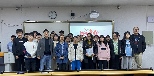 2020级药学二班班主任崔浩、辅导员吴玉峰和全班同学欢送覃玲同学入伍