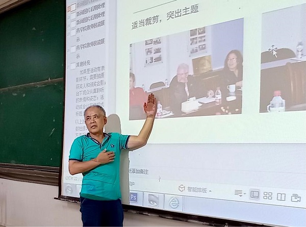 6月8日下午,药学院在仙葫校区教学楼1-303教室开展2021年学生宣传骨干培训班第六讲《校园新闻摄影技术》。本次培训由药学院原办公室主任、资深摄影师黄克南主讲,学办辅导员吴玉峰主持培训活动。