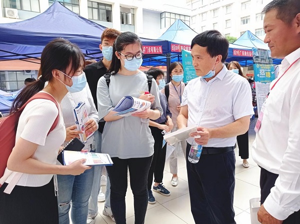 为做好药学院2021届毕业生的就业推荐工作,6月11日,药学院党委书记蒋林带领毕业班辅导员、班主任深入我校明秀校区双选会现场指导毕业生就业。