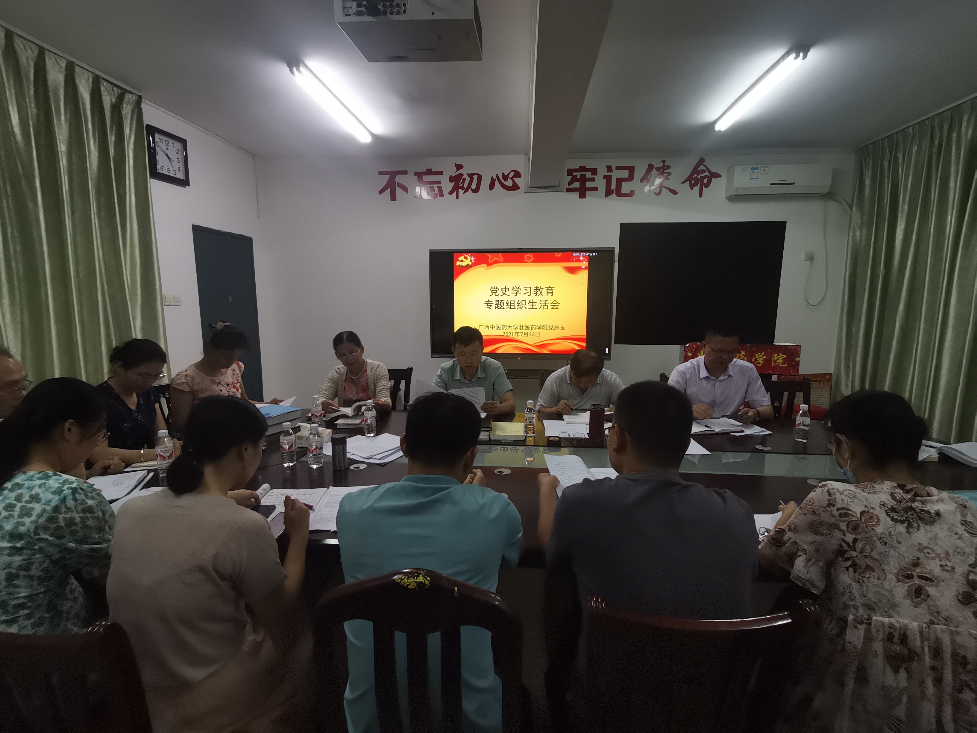 7月13日下午,在壮医楼201会议室,壮医药学院教工党支部开展党史学习教育专题组织生活会,学院处级干部以普通党员身份参加所在党支部专题组织生活会,并带头开展批评与自我批评。