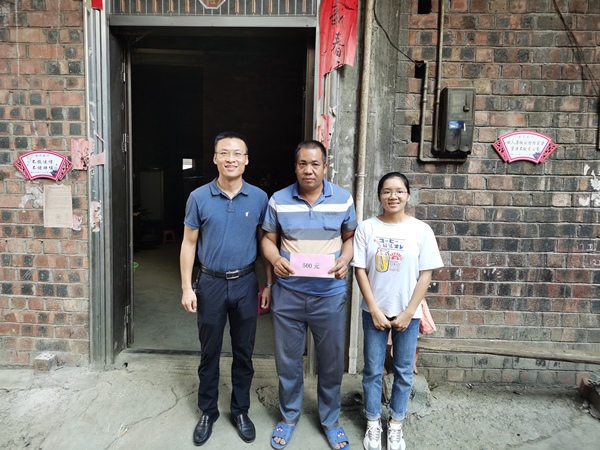 宋南代表学校,送上了500元的慰问金给学生父亲。