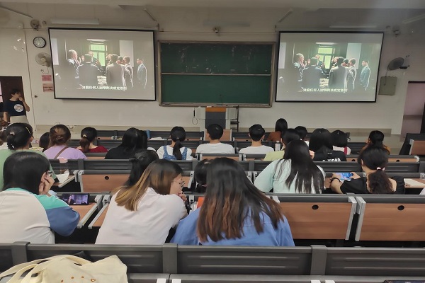 活动中,大家观看了爱国主义题材的电影《东京审判》。《东京审判》以审判二战的日本战犯为题材,讲述了第二次世界大战结束后远东国际军事法庭上来自中国、美国、英国、法国等11个国家的法官对28名甲级战犯长达2年的审判过程。影片中完整复制了当年的法庭,还用相当大的篇幅表现当年对东条英机等甲级战犯审判时的场景,包括法官、检察官、辩护律师、日本战犯等众多真实的历史人物都一一在影片中亮相。