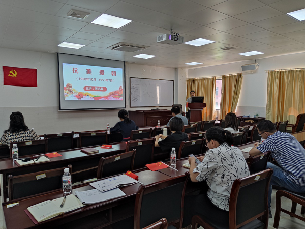 此次会议中首先开展了“党史故事大家讲”的第三季度党课讲座。王柳萍同志做了《中华人民共和国的诞生和社会主义制度的确立》的主题讲座,分别从中华人民共和国的成立、民主革命任务的完成和新生人民政权的巩固、国民经济的迅速发展、过渡时期总路线的提出与社会主义基本经济制度的建立、社会主义政治制度的确立和发展、文教卫生科技等事业的建设和进步、新中国外交基础的奠定的七方面进行了讲述。其次,黄志其同志从历史背景、必要性、英雄人物、意义等方面做了《抗美援朝》讲座。接着,由蒋林同志带头,党员们纷纷对党课学习谈心得体会。随后,曾春晖同志通报了四起违反中央八项规定的典型问题。最后,会议以党支部全体党员同志合唱《我和我的祖国》,为即将到来的伟大祖国72岁生日献礼,祝福祖国繁荣昌盛、国泰民安结束。