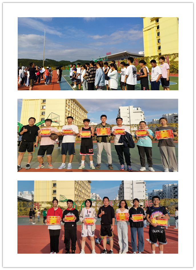 开赛前,和卫宾老师进行激动人心讲话,表扬各个班级准备工作,强调“友谊第一,比赛第二”的体育精神,鼓励大家加强体育锻炼,保持良好体质,更好献身医学事业。本次篮球赛共六个班级派出六支队伍参赛,场上运动员要求三男一女,分小组单循环赛和淘汰赛两轮进行。各个班级接到活动通知,得到班级广大学生喜欢和积极响应,大家热情高涨。各班级在班委组织下,积极选拔运动员,组织啦啦队,安排后勤保障,充分发挥班集体力量。在比赛过程中,裁判员认真组织,公平公正判罚;场上运动员奋力拼搏,相互配合,你来我往,每球必争,将智慧、速度、力量、灵敏和耐力进行完美结合;场下各班啦啦队各显神通,有的班级拉起横幅,有的班级支起音箱,有呐喊声和加油声为场上运动员加油助威,加油呐喊声一阵高于一阵。经过一下午激烈比拼,2021级中西医2班荣获冠军,2021级医学检验技术1班荣获亚军,2021级临床医学1班和2021级中西医临床1班分获三四名。