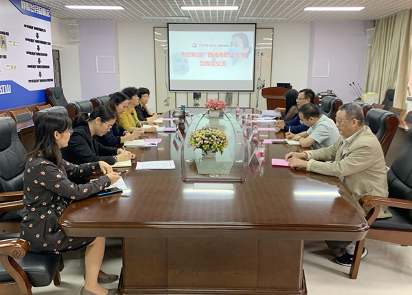 广西城市职业大学到我校护理学院调研交流 日期:2021-10-28 点击数: 次 分享到: 10月28日上午,广西城市职业大学校长李中华一行4人到护理学院调研交流。护理学院党委书记、院长吴彬、副院长马秋平、党委副书记韩叶芬出席接待。座谈会上,双方就广西城市职业大学新增医养照护与管理(本科)专业及人才培养方案进行了论证和深入的研讨。护理学院团队对人才培养方案中培养目标的提出、课程模块及学时的设置等提出了建设性意见和建议。座谈会现场 打印正文 关闭本页