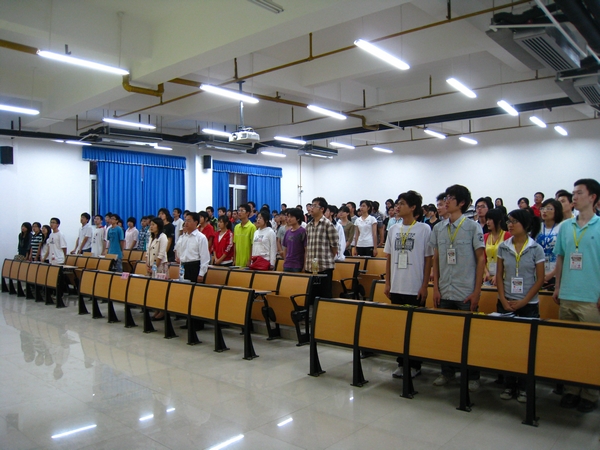 团员高唱团歌《光荣啊,中国共青团》