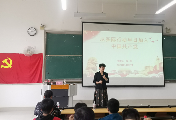 护理学院党委书记、院长吴彬为2021级新生上党课