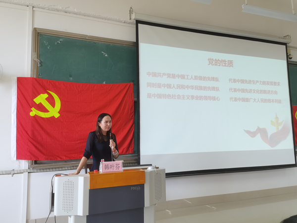 护理学院党委副书记韩叶芬为2021级新生上党课