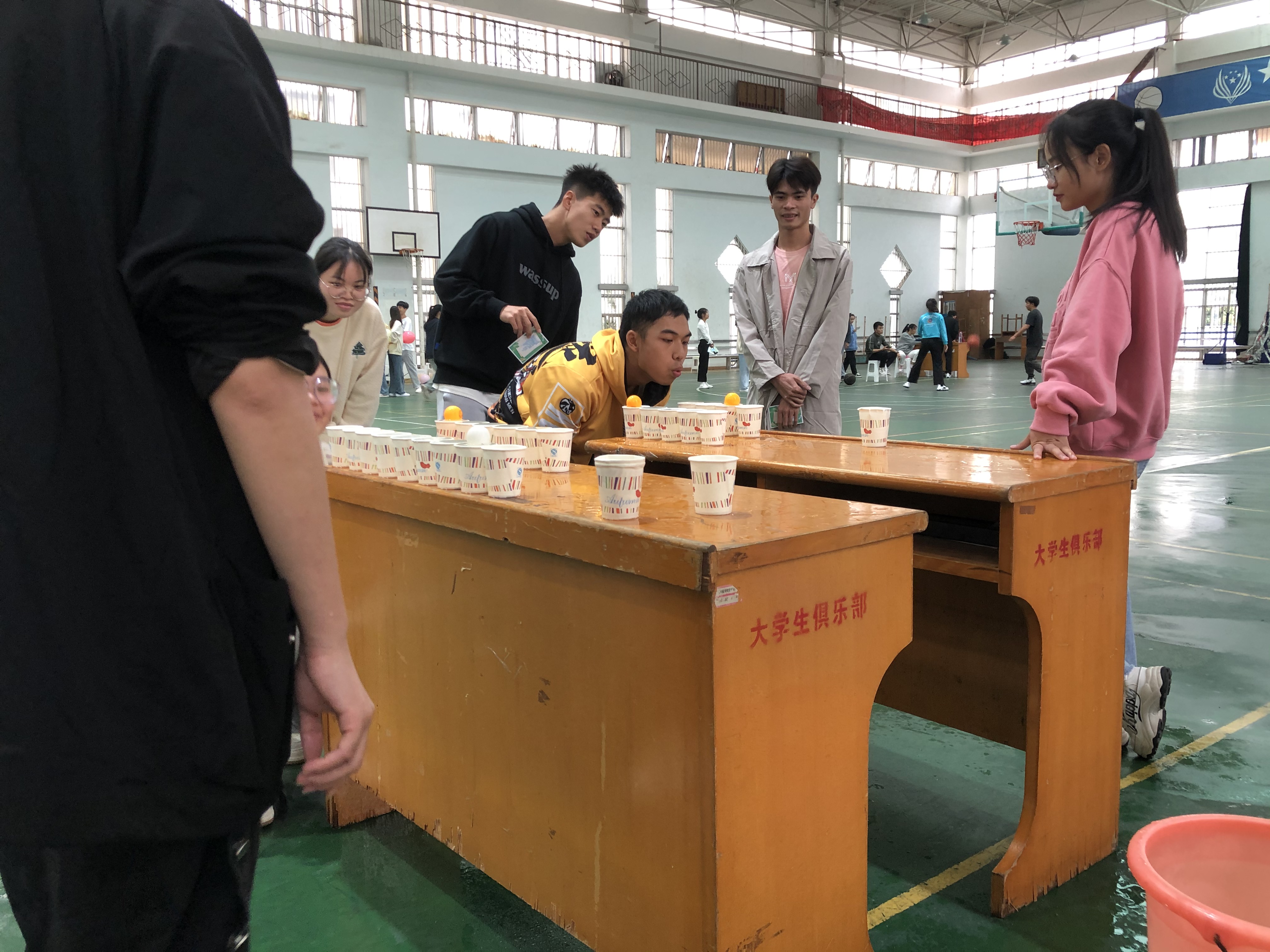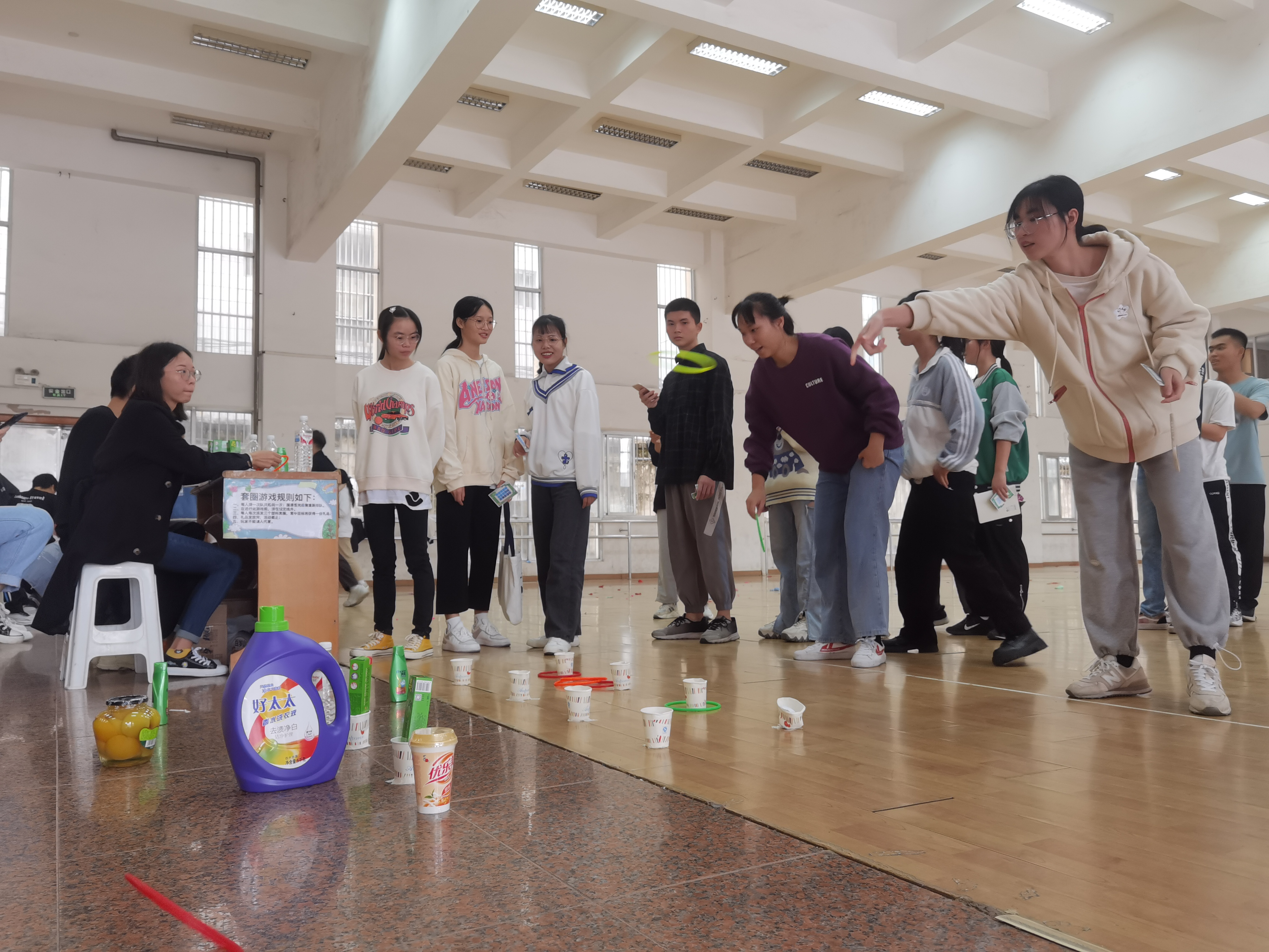 游园活动节目精彩纷呈,种类丰富,有定距离投篮、水桶乒乓球、挟玻珠、套圈等项目。活动项目有单人作战,也有团队协作。同学们热情高涨,虽然本次游园活动主要是面向贫困学生,但现场热闹的氛围也吸引了不少其他同学。各个小游戏几乎排满了人,同学们都在热烈讨论参与,活动区域更是笑声不断,志愿者和工作人员也一直在努力工作,在维持现场秩序的同时也和同学们一起享受游园活动的快乐。在最后每个人也用玩游戏得到的积分兑换到了自己心仪的生活用品。