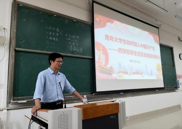 为增强2021级中药学专业新生对中国共产党的认识,帮助新生明确入党流程,11月5日下午,药学院2021级中药学专业全体同学在教学楼1-207教室参加党员发展程序解读会,本次会议由药学院中药学学生第二党支部书记凌勇威主持。