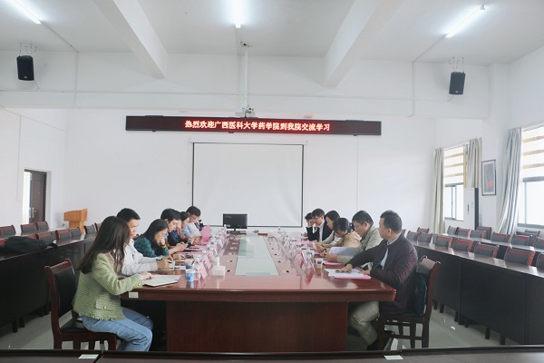 12月10日下午,广西医科大学药学院何萍副院长一行来我院交流学习。交流会在我校仙葫校区达道楼A405室举行。药学院秦华珍副院长、院办、教务办、学工办、科研办主要人员,以及中药学教研室主任、药学专业负责人参加了会议。