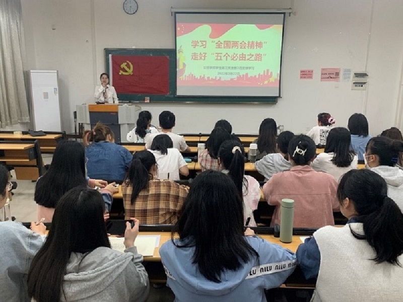 为认真学习贯彻2022年全国两会精神,提高我院学生党员政治修养。公共卫生与管理学院学生第三党支部于3月22日下午在教学楼1-112召开主题为“学习‘全国两会精神’,走好‘五个必由之路’”的党课学习。本次党课由支部书记唐梧茜授课,支部全体党员及入党积极分子参与党课学习。