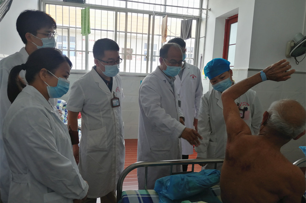 在那楼镇中心卫生院院长黄雪云与该院医疗技术骨干协同下,骨伤学院医疗团队先后在中医科、综合科开展教学查房;对老年性腰椎退行性变引起的坐骨神经痛、带状疱疹后遗神经痛等多名患者的病情做了详细的病史问询、体格检查及影像学阅片,并指导优化中医诊疗方案。通过对这些疑难病例的讨论及操作演示,多名我校毕业的当地医护人员表示获益匪浅,希望老师们多来指导。团队陈龙豪医师、庞婷婷等医师也为门诊患者提供了疾病康复、内科、妇科等疾病咨询诊治与针灸、手法治疗。