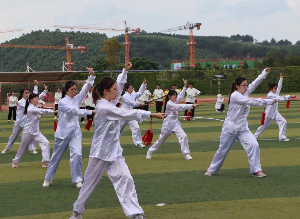 运动会上,尽显“针”风采!太极拳的出与收,一拳一势从容不迫,行云流水,刚柔并济,连绵不断;针推女将们个个身轻如燕,太极长剑伴身如游龙穿梭,点剑而起,似水波荡漾,一剑窥剑意;针推男儿们长拳既出刚劲有力,劲似利剑穿革,身如磐石坚,气吞山河,势如破竹。参赛队员在拳与剑中领悟阴阳平和之意,体会阴阳交替改变,感受天人相应的规律。
