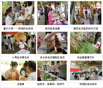 精彩纷呈的云课堂让人受益匪浅,线下活动同样令人流连忘返。上午11点,炮制药事中化支部指导的“相聚壮瑶医药廊,共度端午安康节”端午节特色活动在我校仙葫校区昆弟长廊隆重举行。本次活动共设置了“重午什荟”、“香囊传情”、“文虎之争”、“赛龙舟”、“五彩缤纷线”、“手执艾旗招百福,门悬蒲剑斩千邪”、“点了雄黄酒、“相约药市”等8个特色活动。活动参与涉及各年级学生600余人,参与端午传统文化及民族医药文化知识问答1600余人次,同时吸引了数十名中小学生的积极参与,激发了青少年对中医药的兴趣及中华传统文化的热爱。也让师生在学校感受端午浓厚节日气氛的同时深刻领悟到中华传统文化的魅力,增强了中医药文化自信,为今后投身中医药、民族医药事业、弘扬中华传统文化奠定了坚实的基础。