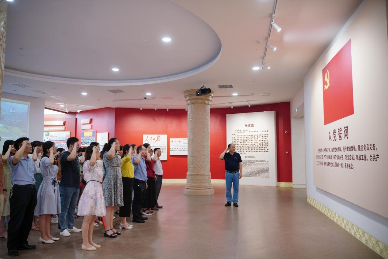全体党员还在鲜红的党旗前举行仪式,重温入党誓词。
