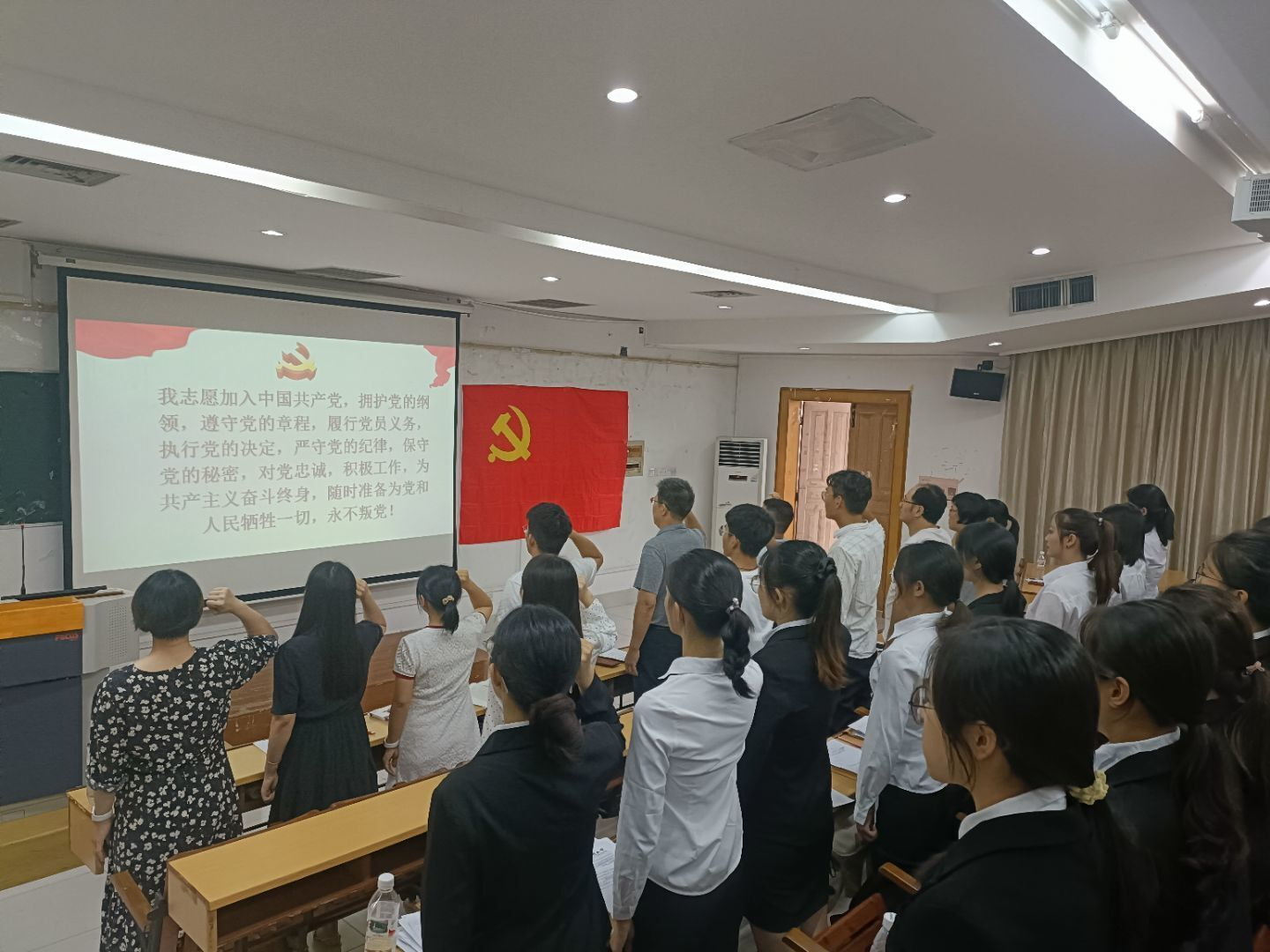 7月7日,高职院学生第一党支部在明秀校区召开2019级学生预备党员转正大会暨毕业学生党员主题教育活动。