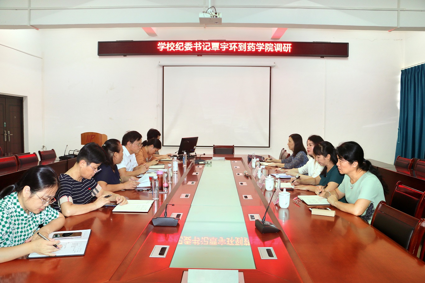 9月14日上午,学校纪委书中记覃一行4人到药学院调研。药学院党政领导班子参加了调研座谈会。 药学院党委书记蒋林主持会议。