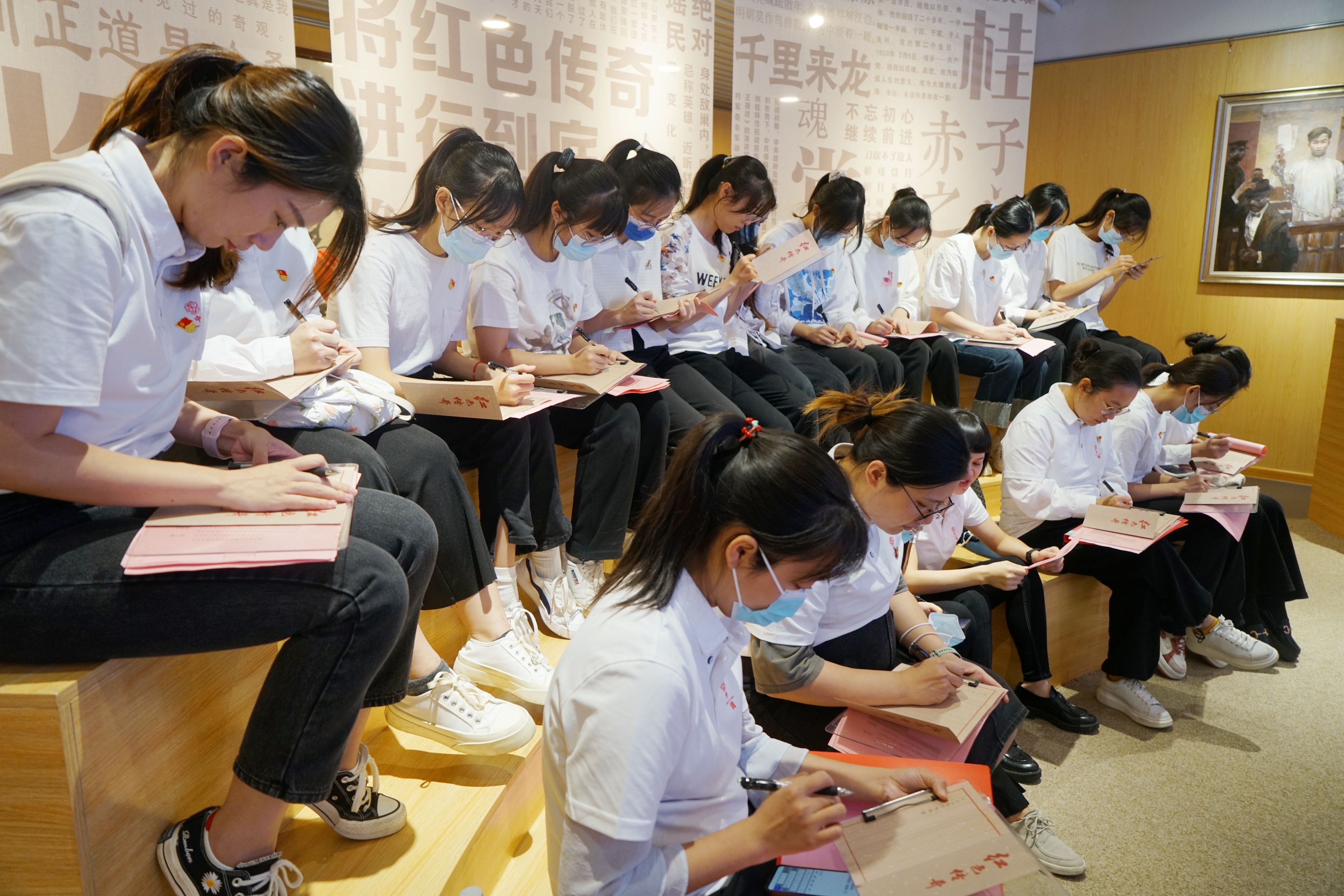 在主题展区,全体师生认真参观了以广西革命历史纪录片《红色传奇》内容为基础的“星火初燃照八桂、风起云涌闹革命、中流砥柱御外敌、浴血奋斗迎解放、铮铮铁骨英雄魂”五个篇章,深入系统学习了从1925年到1949年,在八桂大地上涌现出的一批批优秀广西儿女投身革命和解放事业,用热血书写忠诚,用生命捍卫信念,救国于危难、救民于水火的感人故事。