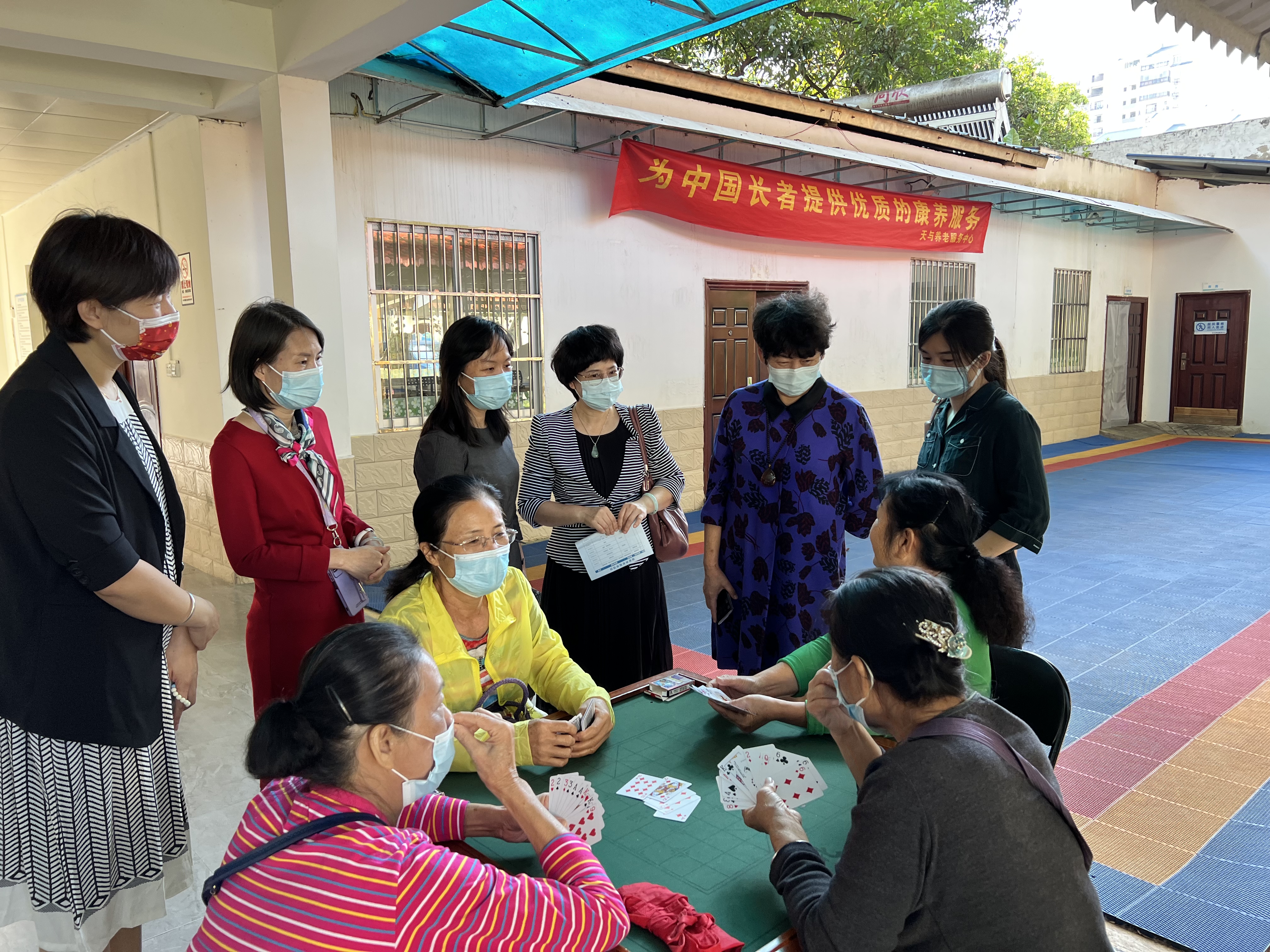 刘欣对吴彬一行莅临鲁班养老中心考察指导表示热烈欢迎,并就养老中心内“南宁市智慧养平台”、社区“嵌入式”居家养老服务、政府购买居家养老服务项目、南宁长护险服务项目等情况进行详细介绍。调研组还实地查看了中心的服务对象档案室、日间照料长者食堂、娱乐活动室等功能区,并与院内长者进行交流,全面了解长者们养老生活情况。