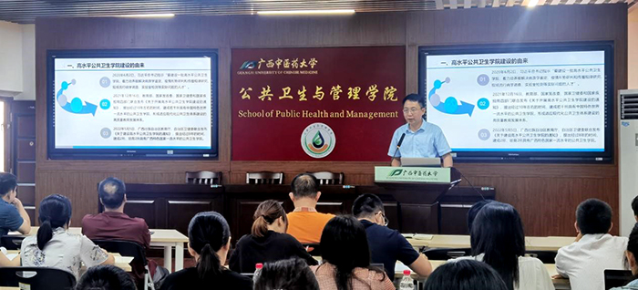 2022年9月,广西壮族自治区教育厅、自治区卫生健康委发文认定我校作为全区高水平公共卫生学院建设高校之一。为推进高水平公共卫生学院建设工作,2022年10月25日下午,公管学院在仙葫校区自诚楼A801召开建设高水平公共卫生学院动员会。公管学院全体教师参加此次会议。
