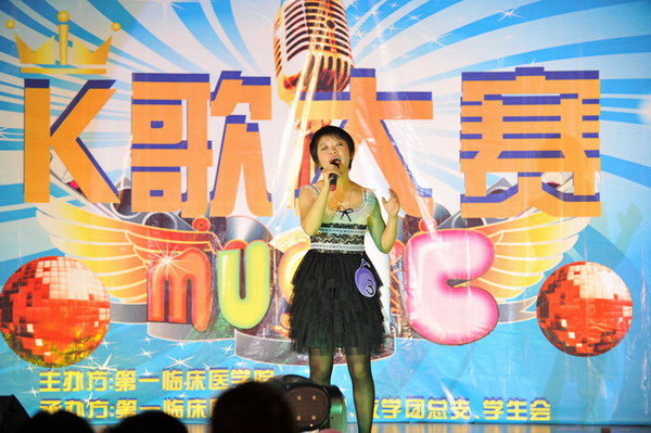 比赛分两轮进行,第一轮获得比分前三名的同学将晋级参加第二轮冠亚季军的角逐,值得一提的是第二轮增设的才艺表演得分将会计入选手的最终成绩。活动别具生面地以方阵拉歌的形式开始,热情洋溢的歌声此起彼伏,顿时点燃了全场的激情。比赛环节,十位选手倾情演唱,靓丽的形象和富有感染力的歌声赢得全场观众的阵阵欢呼。而在才艺表演部分阮俊霖同学的武术表演更是充分展现了他比唱功更扎实的武术功底。由高年级自编自演的舞蹈《印度之花》和《舞动青春》也为晚会增色不少。比赛过程中黄贵华院长即兴为大赛演唱了歌曲。经过激烈角逐,07针推的阮俊霖凭借扎实的唱功和出众的舞台表现力夺得本次K歌大赛的冠军以及最佳人气奖,09针高的农高仁位居第二,07口腔的黄莉婷获第三名和最佳台风奖,最佳组织奖则由07中医班获得。至此,第一临床医学院K歌大赛完美落幕。