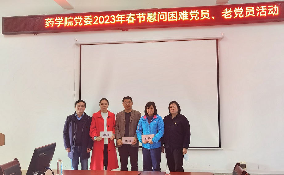 在2023年新春来临之际,根据学校工作安排,1月6日下午,药学院党委在达道楼A405会议室开展春节前慰问党员代表活动。学院党委书记蒋林、党委副书记李豫萍及教师党员代表参加活动。