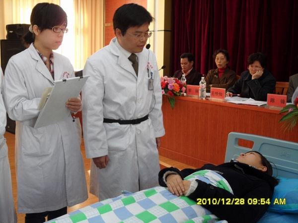 12月28日,瑞康临床医学院2010-2011学年青年教师教学查房比赛在瑞康临床医学院第七教室成功举办。经过紧张的一天,瑞康临床医学院各教研室经过前期预赛选派的12位参赛青年教师依次进行了激烈的主治医师教学查房比赛。