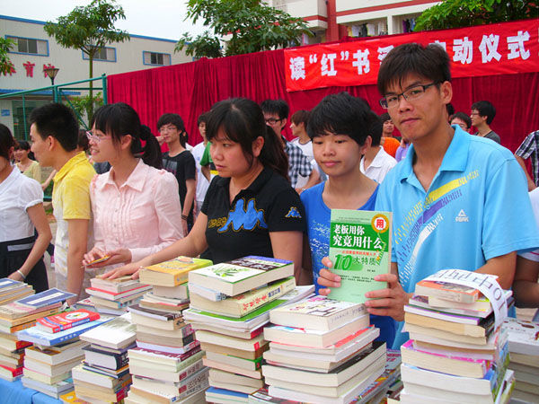根据《读红色经典 树理想信念——第二届广西高校全民读书活动方案》(桂党高工宣〔2011〕22号)的文件精神,5月12日下午,赛恩斯新医药学院读“红”书活动启动仪式暨图书捐赠仪式在篮球场举行。赛恩斯新医药学院学生管理科副主任王海婴老师、团委副书记肖苗老师以及学工部全体老师参加。