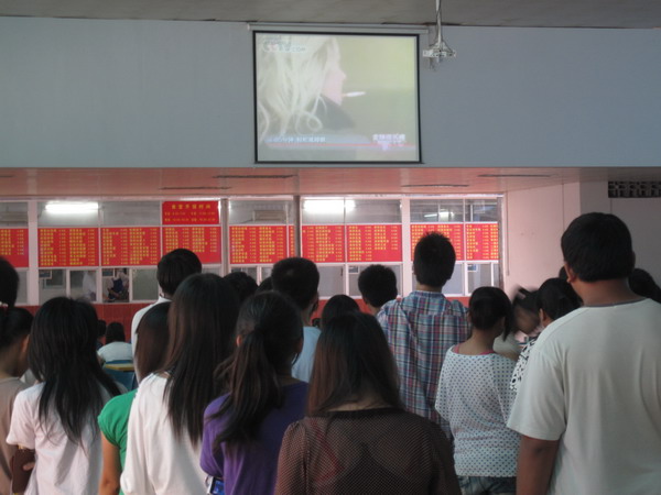 同学们聚精汇神观看禁烟宣传视频