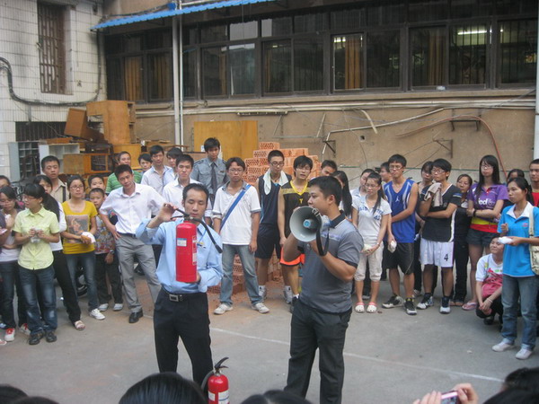 此次消防安全教育包括三个部分的内容:消防知识教育,疏散演练和消防演练。通过观看消防常识教育的视频,同学们掌握了常见火灾的原因以及预防和处理的方法。通过疏散演练和消防演练,同学们掌握了火灾发生时如何有序疏散和自救。27日下午在学生宿舍楼火灾预警发出后,同学们在现场领导的指挥下有序地按照计划疏散出模拟的火灾现场。韦艾凌副院长在现场对同学们的表现做出了总结,他指出了此次演练的一些不足,同时强调了消防安全教育的重要意义。最后,在后勤部卢春副主任及武装保卫部的专业人员指导、示范下,同学们又认真学习了灭火器的使用方法,并进行了灭火的演练。