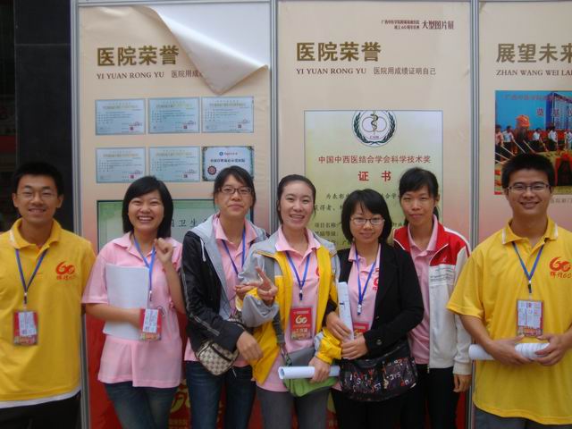 2011年10月26日,满怀着喜悦和期待,广西中医学院附属瑞康医院迎来了建院60周年。院庆活动期间,瑞康临床医学院300多名学生志愿者投身到各项院庆服务工作当中,得到了各级领导和嘉宾的广泛好评,圆满的完成了志愿服务工作。