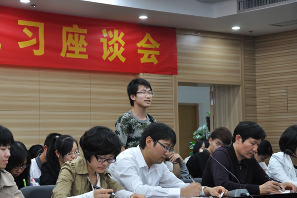 座谈会上,赛恩斯新医药学院教务处处长黄红泓说明了开展《中医基础理论》等中医基础课程的见习,是赛恩斯新医药学院培养本科应用型人才课程教学改革的内容之一,对于 积极探索如何有效提高赛恩斯新医药学院中医学专业的教学质量有着重要的意义,希望通过本次座谈会和今后的教学反馈,一起认真总结经验,为进一步完善赛恩斯新医药学院的教学改革提供参考。接着,同学们结合两周见习以来的感悟、收获,以及在学习中遇难的困难,对见习安排、见习内容和带教老师带教方法等具体问题进行了踊跃发言。与会的教务管理人员和教师代表对同学们所提出的相关问题给予了满意的解答。